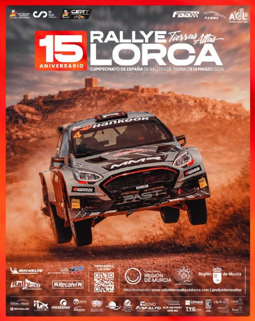 El Rallye Tierras Altas de Lorca alcanza este año una cifra redonda. La decimoquinta edición de la prueba se disputará los días 13 y 14 de marzo, reafirmando a la Ciudad del Sol como punto de partida del Campeonato de España de Rallyes de Tierra Rallycar una temporada más. Tras quince años de crecimiento sostenido, la cita lorquina se ha convertido en una referencia dentro del calendario nacional de tierra, tanto por el nivel deportivo como por su capacidad organizativa y el impacto que genera en el municipio y su entorno. Este evento automovilístico está organizado por el Automóvil Club de Lorca con la colaboración de la Dirección General de Deportes, el Instituto de Turismo de la Región de Murcia (ITREM), el Ayuntamiento de Lorca, la Real Federación Española de Automovilismo (RFEDA) y la Federación de Automovilismo de la Región de Murcia (FARMU). La Plaza de España de Lorca ha acogido hoy el acto de presentación de la prueba a cargo del alcalde de Lorca, Fulgencio Gil Jódar; el director general de Deportes, Fran Sánchez; el vicepresidente de la Real Federación Española de Automovilismo, José Vicente Medina; el presidente de la Federación Andaluza de Automovilismo, Manuel Alonso; el vicepresidente de la FARMU, Antonio López, y el presidente del Automóvil Club de Lorca, José Mulero.