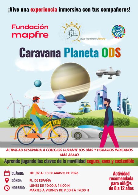 En su intervención, el primer edil ha informado que "la Fundación Mapfre, en colaboración con el Ayuntamiento de Lorca, ha puesto en marcha -en el marco de su programa educativo- la 'Caravana de Movilidad Segura y Sostenible', esta actividad educativa gratuita, con un enfoque gamificado y experimental, para acercar la seguridad vial, la prevención de lesiones no intencionadas y la sostenibilidad al alumnado".