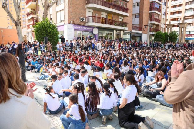 La edil de Educación, Rosa María Medina, junto al director general de Atención a la Diversidad, Pedro Mondéjar, han asistido a la Alameda de la Constitución, donde se han reunido los escolares tras las actuaciones de los coros en el IES Francisco Ros Giner, IES José Ibáñez Martín, iglesia de Santo Domingo, iglesia de San Francisco y la iglesia Nuestra Señora del Carmen, y ha finalizado en la Alameda, con una actuación conjunta del alumnado participante, con la colaboración del Conservatorio Narciso Yepes. Entre las obras que se interpretan en los encuentros destaca la canción 'Por eso cantamos juntos', del compositor Josu Elberdin, que forma parte del repertorio común de esta edición, y 'Un millón de amigos', de Roberto Carlos.