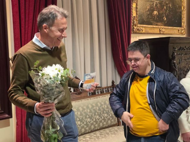 El alcalde de Lorca, Fulgencio Gil, ha recibido esta mañana en el Ayuntamiento a varios usuarios y profesionales de la asociación, mostrando el respaldo institucional a esta importante cita y destacando el papel fundamental que desempeñan en la integración y visibilización de las personas con discapacidad intelectual. Durante la visita, han querido tener un detalle con el primer edil regalándole una flor natural amarilla. Este regalo simboliza la alegría, la energía y la inclusión, visibilizando la causa y poniendo en valor la fuerza y el optimismo con el que afrontan su día a día.