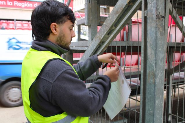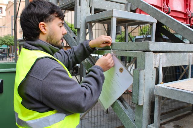El Bando de la Semana Santa se colocaba en las entradas a cada uno de los módulos de los palcos de la carrera principal. Tras el enarenado, durante la pasada madrugada, se procedía a la limpieza de las sillas, la numeración y colocación de las colgaduras, además de probar todo el sistema de megafonía.