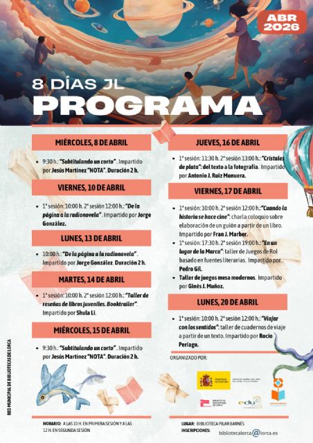 La edil de Educación del Ayuntamiento de Lorca, Rosa María Medina, ha anunciado la puesta en marcha durante este mes de abril de la programación "8 días JL 2026", una iniciativa dirigida a jóvenes lectores que se desarrollará en la Biblioteca Pilar Barnés y que forma parte del proyecto "Leer, comprender y crear: la lectura, una reacción en cadena", impulsado por la Red Municipal de Bibliotecas de Lorca y dependiente de la Concejalía de Educación, con el respaldo del Ministerio de Cultura.