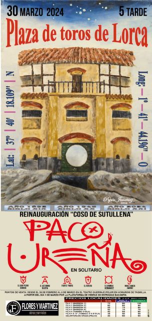 Las entradas para el festejo de reinauguración, con Paco Ureña y las mejores ganaderías del país, se pondrán a la venta en el Teatro Guerra e Ifelor